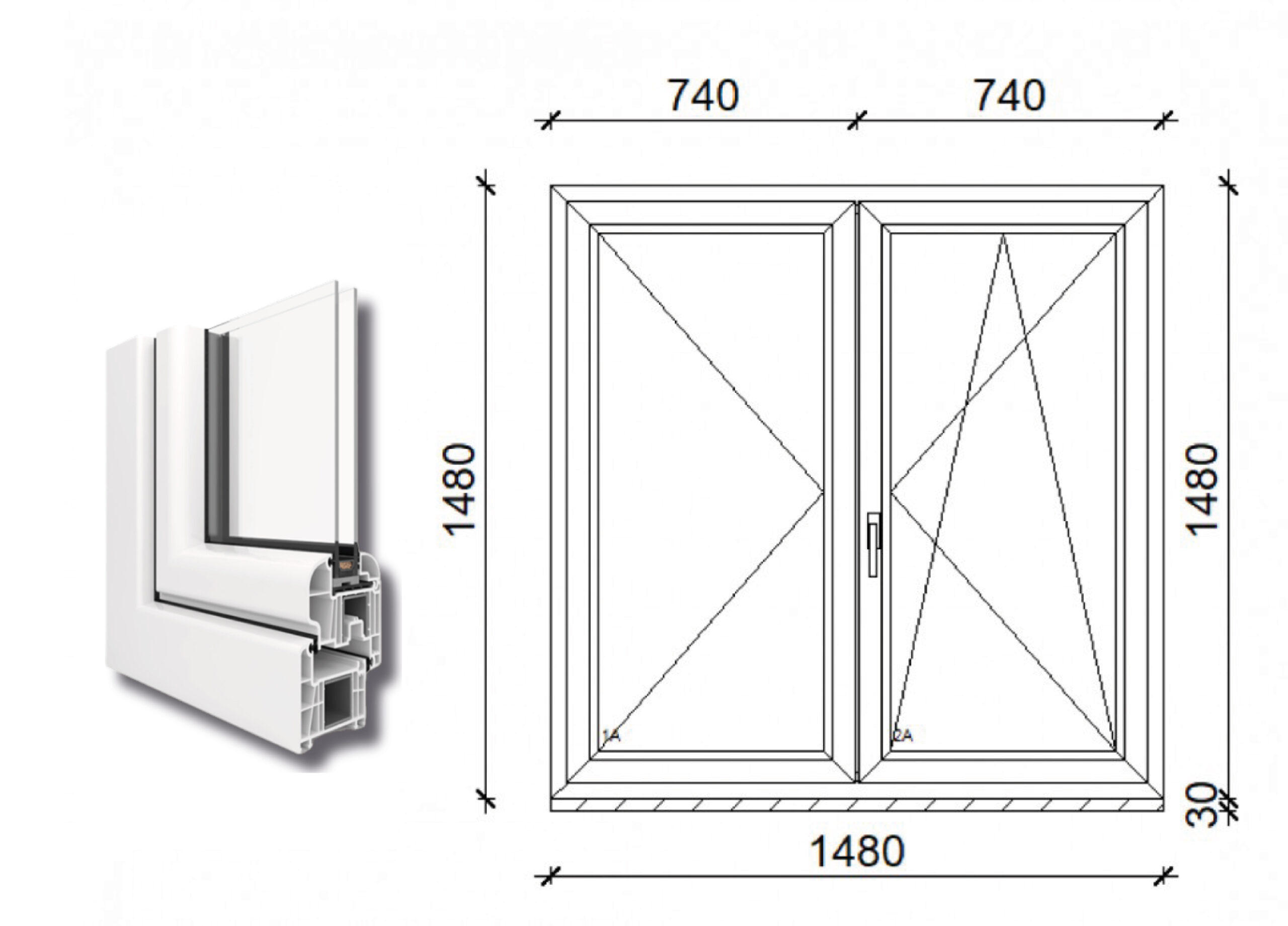 Arkitek – 150×150 Kétszárnyas Bukó-Nyíló Ablak