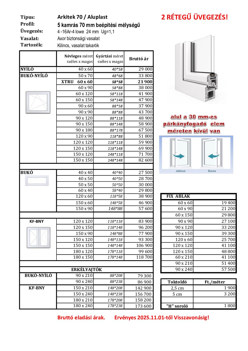 Arkitek 70 mm-es ablak kedvező árú, mégis megbízható választás. A 2 rétegű, argonos hőszigetelő üvegezés hatékony szigetelést biztosít, miközben elérhetőbb árkategóriát kínál a vásárlóink számára.