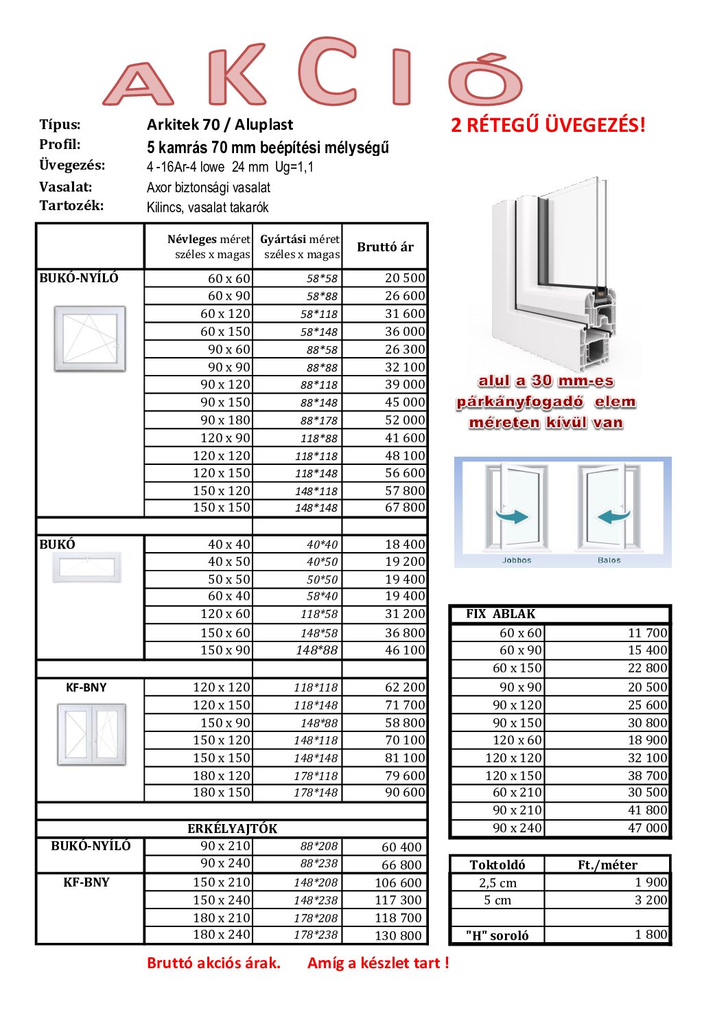 Arkitek 70 mm-es ablak kedvező árú, mégis megbízható választás. A 2 rétegű, argonos hőszigetelő üvegezés hatékony szigetelést biztosít, miközben elérhetőbb árkategóriát kínál a vásárlóink számára.