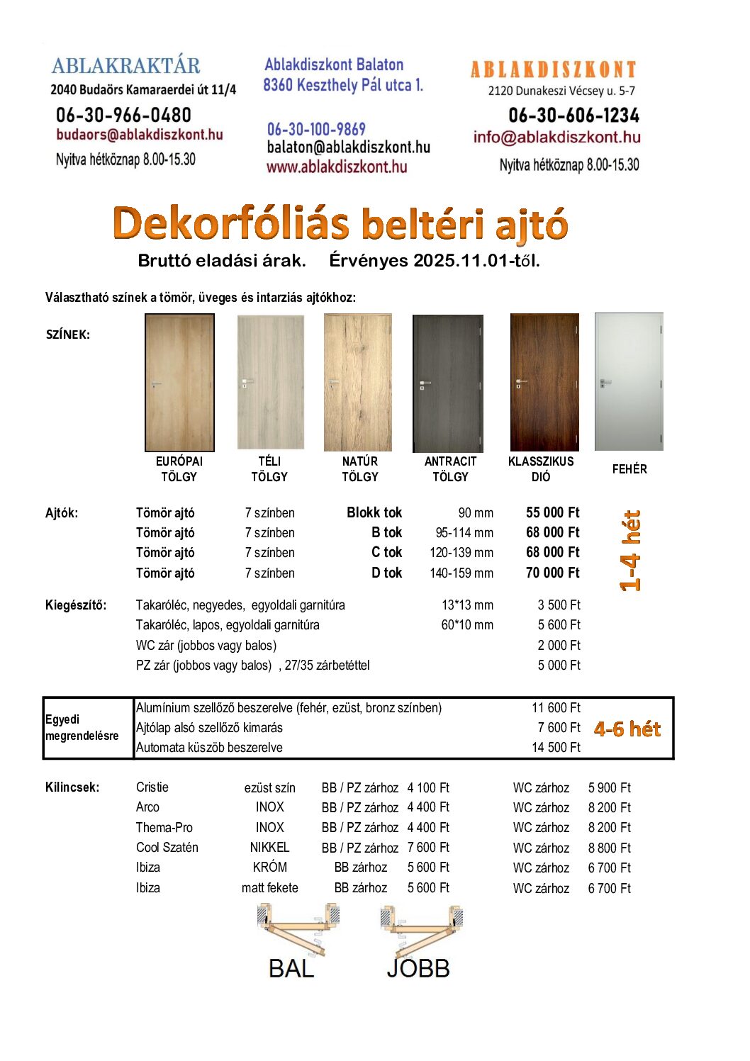 | Nyílásirány | balos, jobbos |